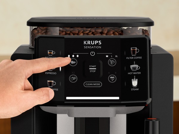 Hrepenite po popolni kavi, a se bojite zapletenosti aparata za kuhanje kave v zrnu? Pozabite vse dvome s Krups Sensation, zahvaljujoč tehnologiji Barista inside, ki optimizira vsak korak procesa priprave. S priročnimi funkcijami, kot so praktičen zaslon na dotik, prilagodljivi recepti in svetlobna opozorila, uživanje dnevnega odmerka kofeina še nikoli ni bilo enostavnejše. In najboljše od vsega? Naj aparat opravi tudi težko delo s popolnoma avtomatiziranim programom za čiščenje.