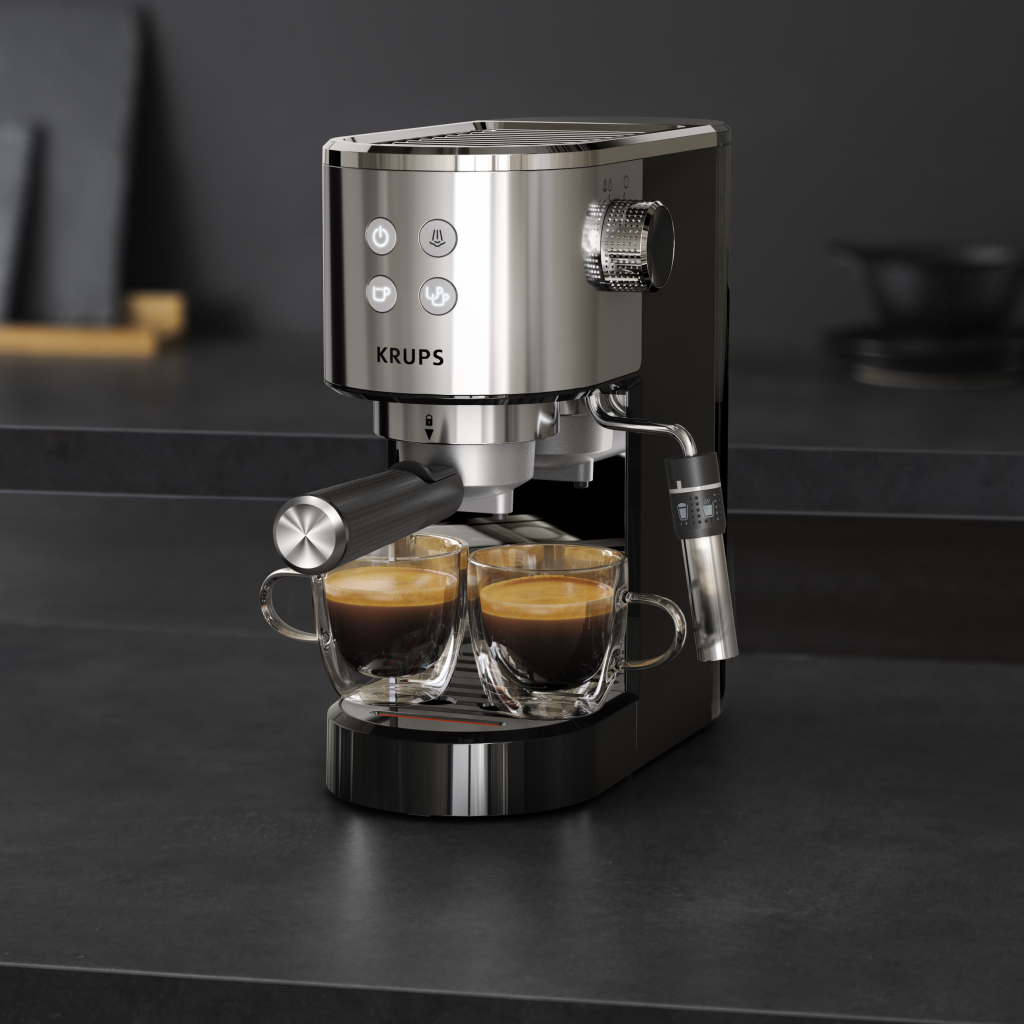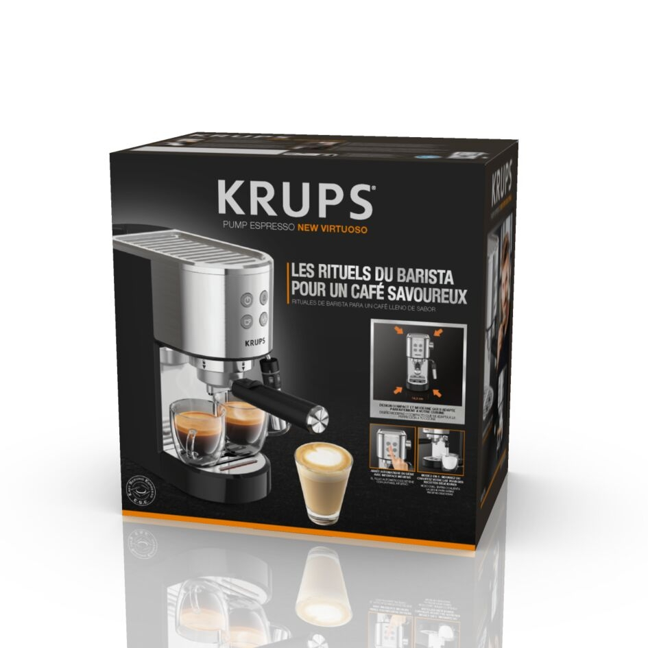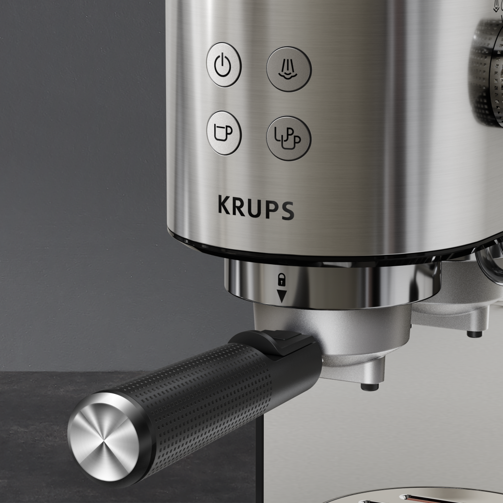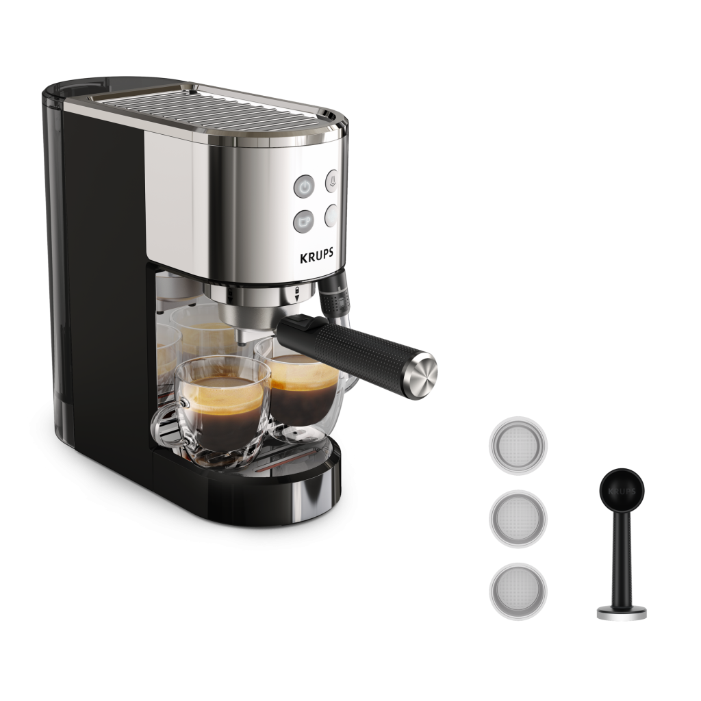 S KRUPS Virtuoso + odkrijte svojega novega zaveznika, ki vam bo v hipu pomagal pripraviti espresso kot pravi barista. Ta kompakten in eleganten aparat za espresso s črpalko ima izjemno intuitiven vmesnik s štirimi preprostimi gumbi, ki vas vodijo do mikavne pene in mešajočih arom, skupaj s samodejno zaustavitvijo pretoka za vrhunsko kavo. Aparat za espresso, enostaven za uporabo, bo kmalu postal vaš popoln spremljevalec na poti do popolnega espressa.