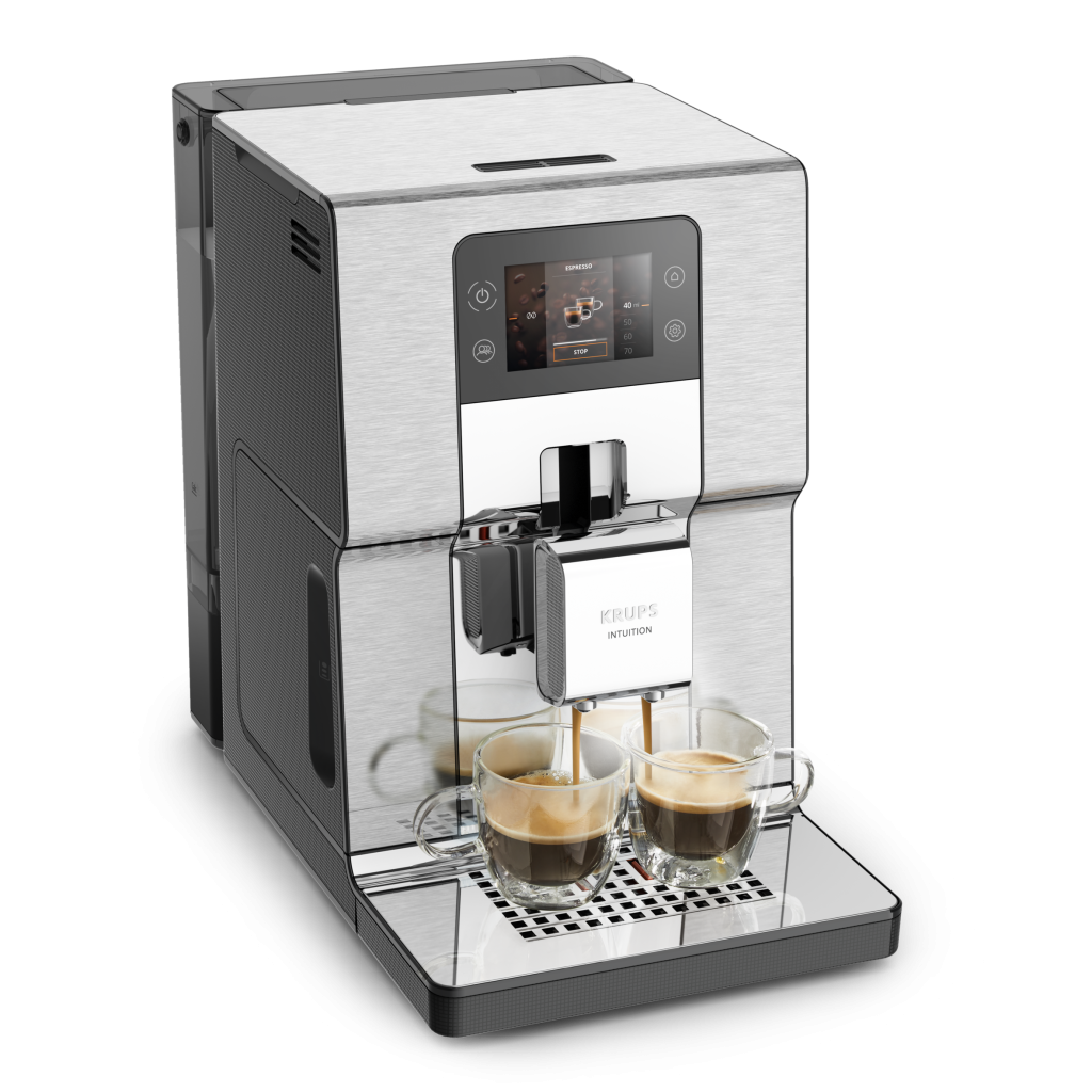 Kavni aparat Intuition Experience obljublja profesionalno pripravo barista napitkov v vašem domu. Barvni zaslon na dotik in intuitivni svetlobni indikatorji vas bodo vodili skozi poglobljeno izkušnjo kave, zmanjšane ravni hrupa pa nudijo dodatno udobje. Z neposrednim dostopom do 20 toplih napitkov ta aparat za kavo iz nerjavečega jekla ponuja do 4 intenzivnosti kave in 8 profilov za izboljšano personalizacijo.