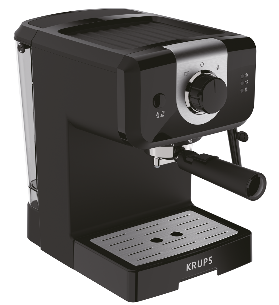 Aparat Krups OPIO Espresso vam v hipu pripravi odličen espresso naravnost v skodelico; z ročnim upravljanjem za rezultate po meri, aluminijastim kotlom z napredno tehnologijo za hitro segrevanje in tlakom črpalke 15 barov za ekstrakcijo okusa in arome profesionalne kakovosti. Parna šoba omogoča pripravo do popolnosti spenjenega kapučina, niz izboljšanih funkcij pa izboljša izkušnjo domačega espressa.