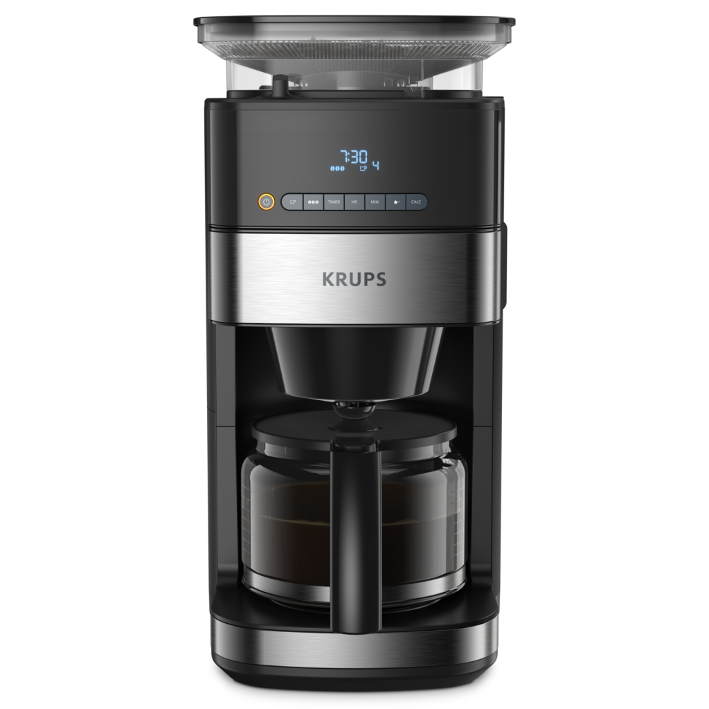 Kavni aparat KRUPS Grind and Brew z mlinčkom ponuja najboljšo gurmansko kavo z enostavnim samodejnim postopkom za mletje in pripravo brezhibne kave, polnega okusa in arome. Opremljen z vrhunskim koničnim mlinčkom, naprednimi funkcijami in enostavnimi nastavitvami za prilagajanje količine ter moči, priprava jutranje kave ni bila še nikoli tako preprosta kot z Grind and Brew, za okus po sveže zmleti kavi brez primere.