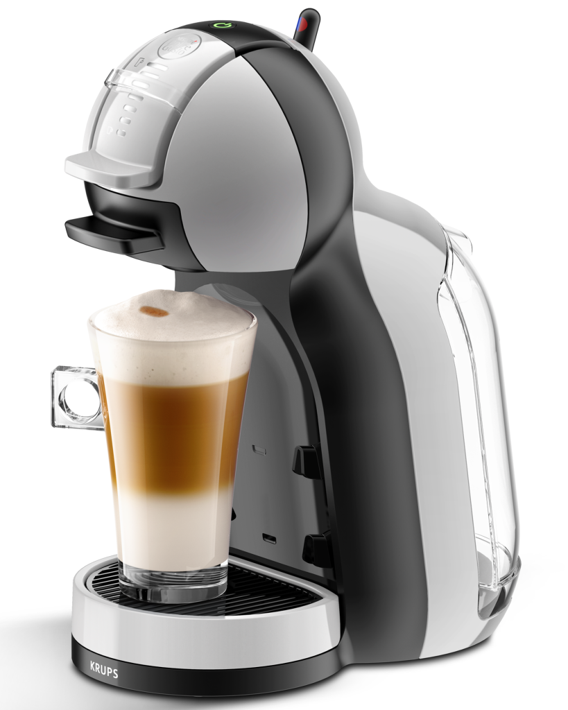 Nescafé Dolce Gusto Mini Me White and Grey by Krups. Izrazite se z Mini Me, zabavnim, izjemno kompaktnim aparatom za kavo na kapsule, ki je na voljo v različnih barvah.