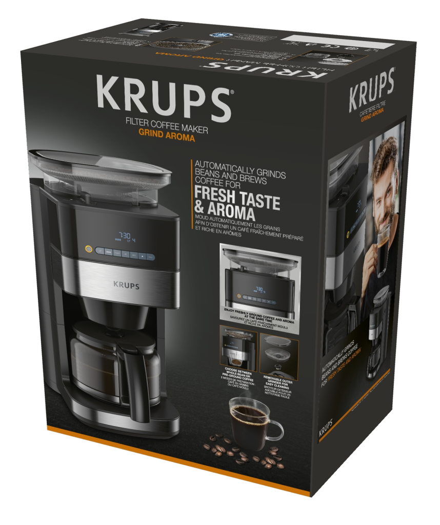 Kavni aparat KRUPS Grind and Brew z mlinčkom ponuja najboljšo gurmansko kavo z enostavnim samodejnim postopkom za mletje in pripravo brezhibne kave, polnega okusa in arome. Opremljen z vrhunskim koničnim mlinčkom, naprednimi funkcijami in enostavnimi nastavitvami za prilagajanje količine ter moči, priprava jutranje kave ni bila še nikoli tako preprosta kot z Grind and Brew, za okus po sveže zmleti kavi brez primere.