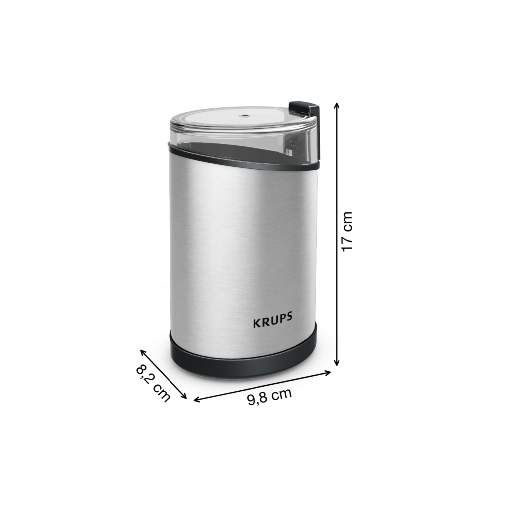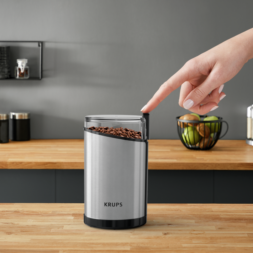 Hitro in učinkovito zmeljite svežo kavo z zmogljivim mlinčkom za kavo KRUPS Fast-Touch, vsestranskim aparatom, ki ga lahko uporabite tudi za sekljanje ali mletje oreščkov, semen, zelišč in začimb. Ta električni mlinček za kavo je s kompaktno zasnovo in elegantno estetiko priročen in uporaben dodatek v vsaki kuhinji.