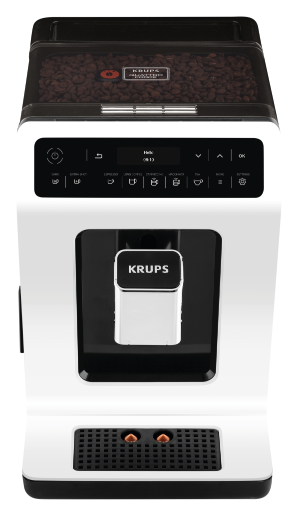 • POPOLNA AROMA KAVE: Quattro Force sistem za vsak korak do popolnega espressa, z optimiranim mletjem, potlačenjem, varjenjem in odvajanjem (čiščenjem).