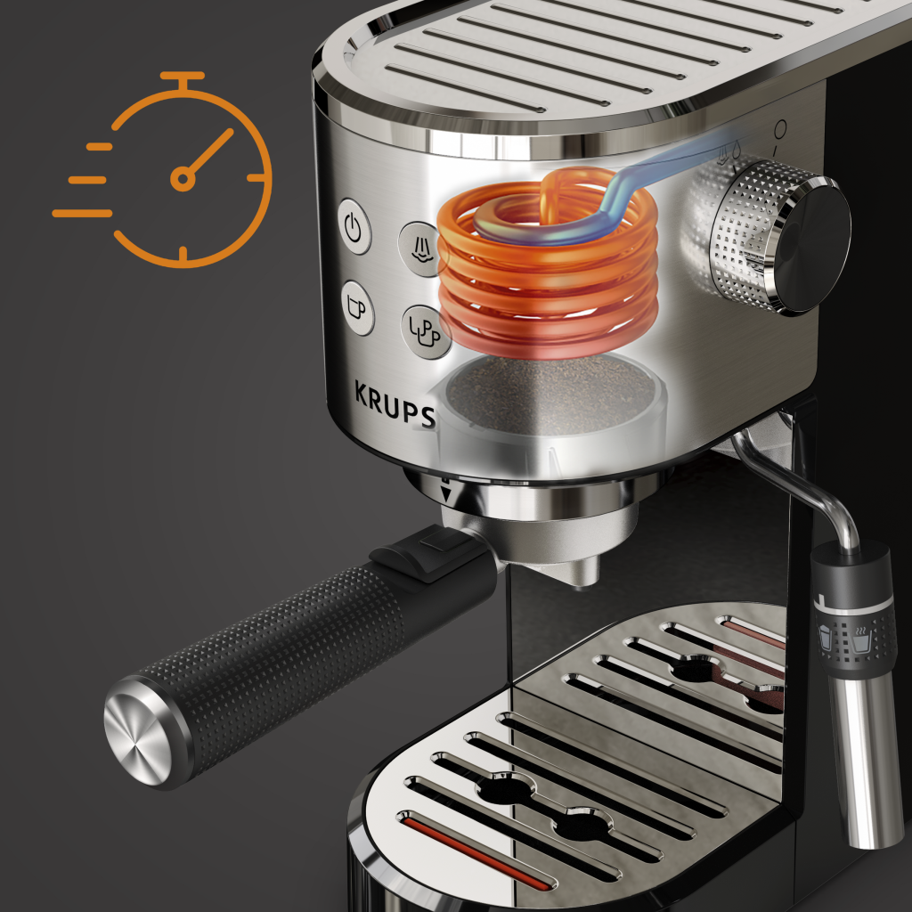 • Sistem Krups Thermoblock poskrbi za hiter čas segrevanja, da lahko takoj začnete preizkušati svojo strokovnost